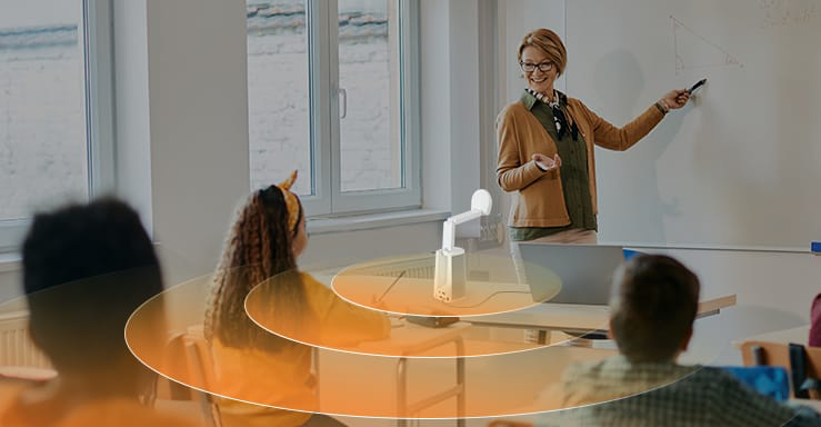 AVer’s AI technology enables a seamless experience in recording between humans and documents. The image automatically flips when the camera head is raised, allowing the teacher to always be looking in the right direction.