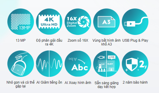 Zoom 16X và Vùng bắt hình khổ A3