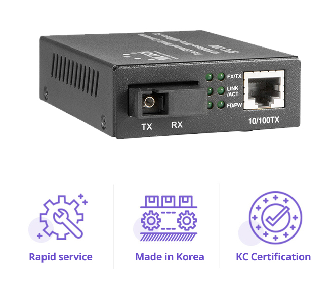 - 100Mbps 1Port (SC Connector) Single Mode: 9/125㎛(20km)