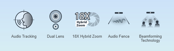 Video bar PTZ ống kính kép với khả năng hybrid zoom 18X cho phòng vừa và lớn