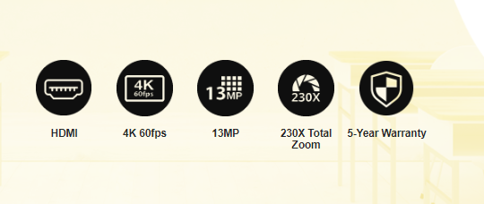 - Zoom : 204X total zoom (10X optical zoom x 1.7X AVerZoom™ x 12X digital zoom)