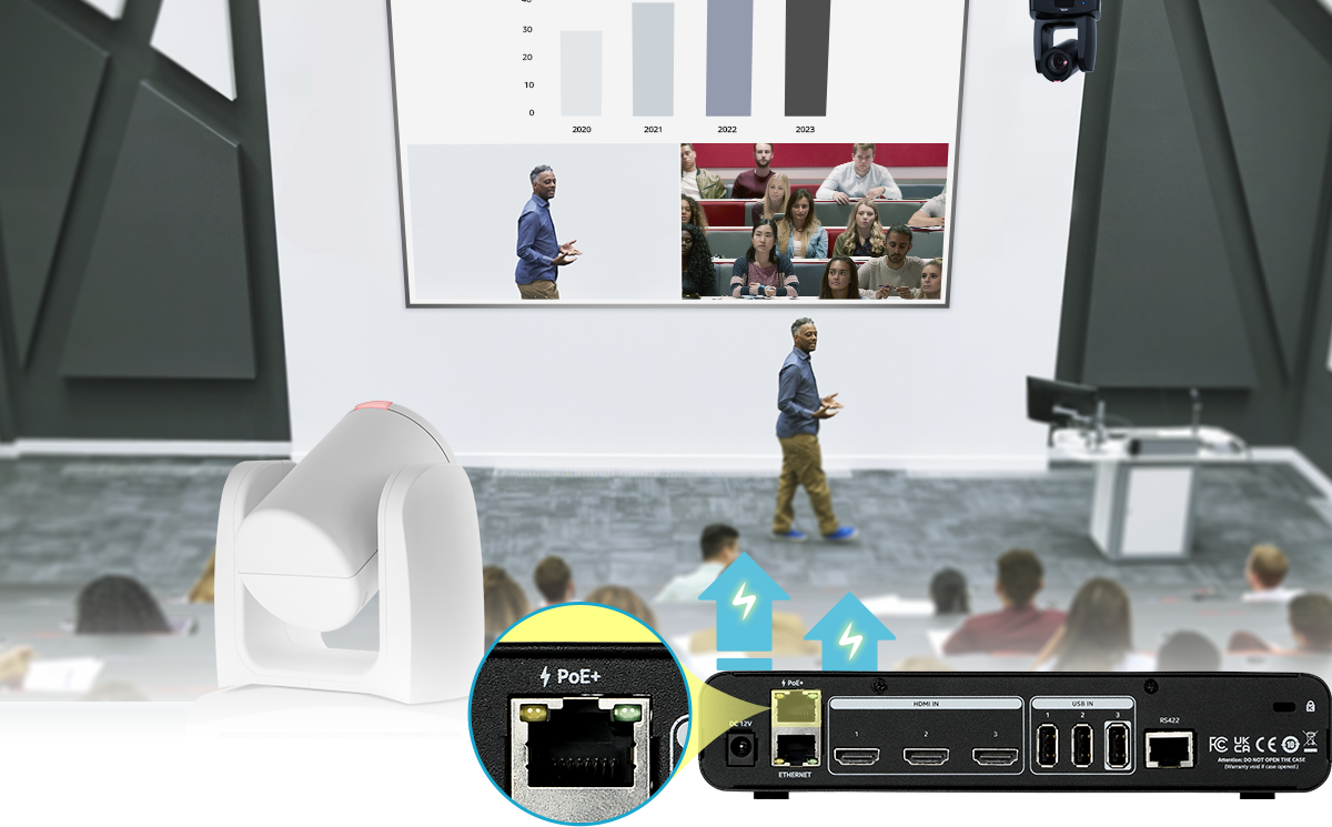 Với các tính năng điều khiển camera và chuyển đổi video toàn diện, MT300 không chỉ đáp ứng nhu cầu của các tình huống ứng dụng khác nhau mà còn hỗ trợ cấp nguồn PoE+, không cần cài đặt thêm nguồn điện, cho phép bật, chụp và quay camera được điều khiển ngay lập tức.