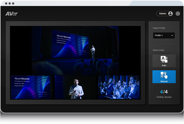 Người dùng có thể truy cập Web UI thông qua trình duyệt web bất cứ lúc nào. Nó có giao diện điều khiển đơn giản và trực quan. Nó cũng có thể tạo hồ sơ người dùng và ghi lại các cấu hình video độc quyền, cài đặt camera và các thông số khác, giúp mọi hiệu suất âm thanh và video trở nên tuyệt vời.